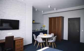 Guests can book rooms of the following categories: Standard and Studio. The rooms are equipped with a TV, a work desk, a microwave, a refrigerator and a kettle, and a bathroom. The Studio rooms have a fully equipped kitchen.