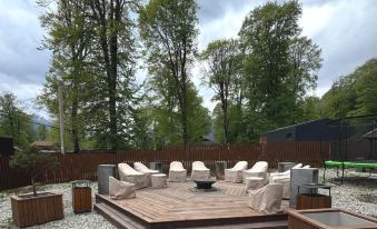 At your disposal: an organized transfer from the airport you will get there comfortably. Parking and luggage storage no worries. Free Wi-Fi is always available. Modern laundry taking care of your belongings. Each chalet has its own barbecue area for family gatherings. The campfire area and trampoline are fun and cozy in the evenings for the whole family and company. Morning breakfasts, exciting excursions, and a relaxing sauna are available for an additional fee choose only what you need.