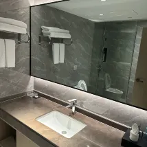La stanza dev'essere stata ristrutturata non molto tempo fa. L'odore era piuttosto evidente. Mi sono sentito nauseato e ho voluto vomitare per tutta la notte. Non so se c'entrasse qualcosa. L'acqua della vasca passa da fredda a calda due volte al minuto, quindi è necessario prendersi il tempo di risciacquare più volte. C'erano macchie d'acqua sul tavolo quando sono entrato nella stanza. Le ho viste solo quando ho tirato fuori i vestiti e li ho appoggiati. I miei vestiti erano tutti macchiati. Quando li ho asciugati con un tovagliolo, c'erano macchie evidenti. Non sapevo se fosse acqua. Nel complesso la sensazione non è delle migliori.