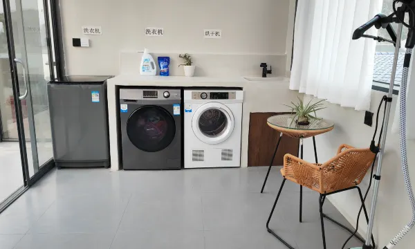 The homestay currently has 16 guest rooms. The spatial layout of each guest room has been carefully planned, paired with high-grade micro-cement, striving to bring guests a high-quality living experience. There are various shared spaces here, including an audio-visual area with high-definition equipment, a courtyard, a billiards room, a table tennis table, a sunken fireplace leisure area, a kitchen, a laundry room, a gym, etc.