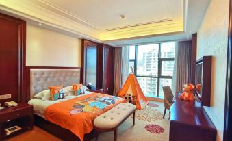 Parent-Child Family Room (Floor-to-Ceiling Windows Ocean Theme | Cute Pet Style Tent And Wooden Horse)