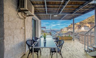 下了碼頭就有人接,離碼頭還行不遠也不近,站陽台上景色非常好。老闆娘很熱情人也很好給我們介紹了一條景色宜人的路線,確實非常適合看日落!