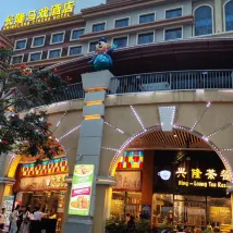 The staff at the hotel is helpful even we need to communicate via the translator application. Hotel location is close to the theater for Chimelong show.