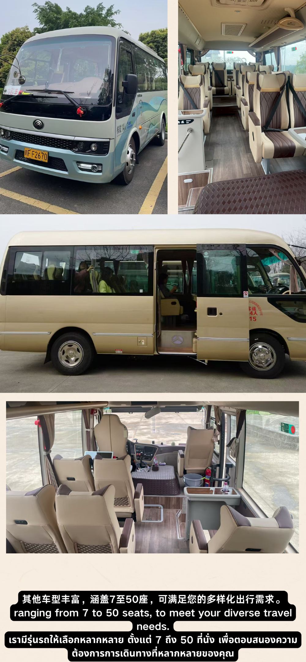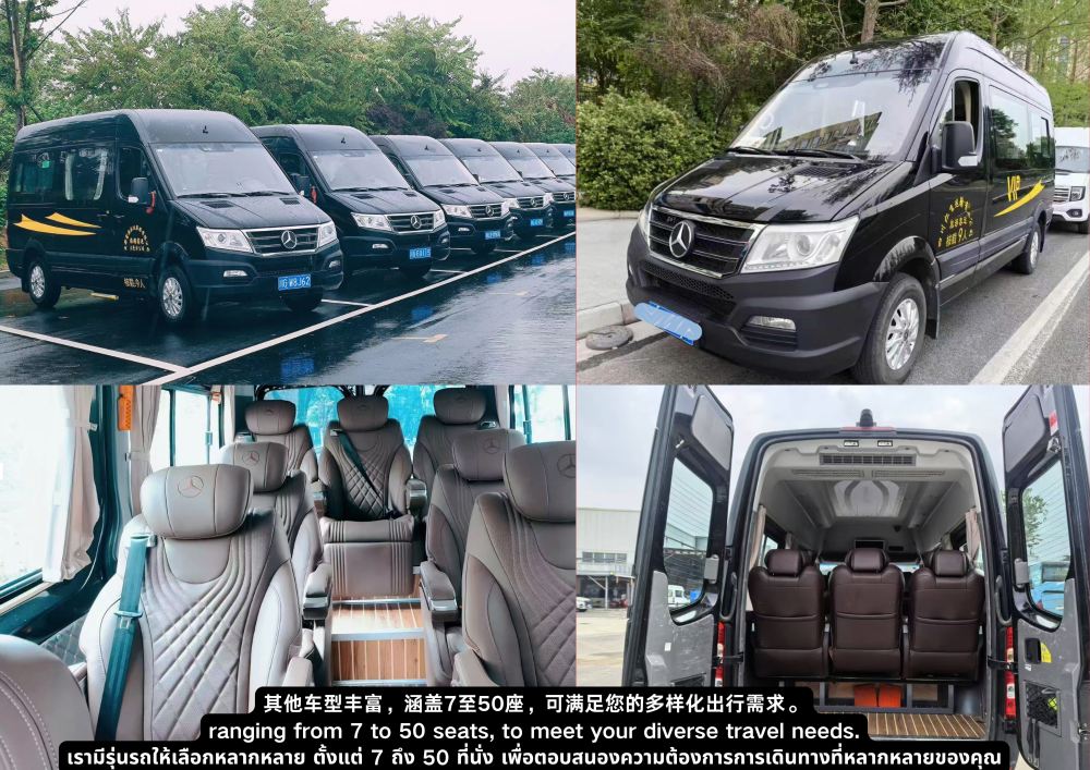 ▲ Minivan di lusso Yutong a 9 posti, spazio ampio e confortevole, dotato di sedili aeronautici nella fila centrale e porte di ricarica USB, per un viaggio comodo e pratico. (Può contenere 10 valigie da 22-26 pollici)