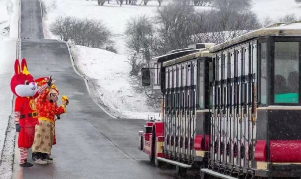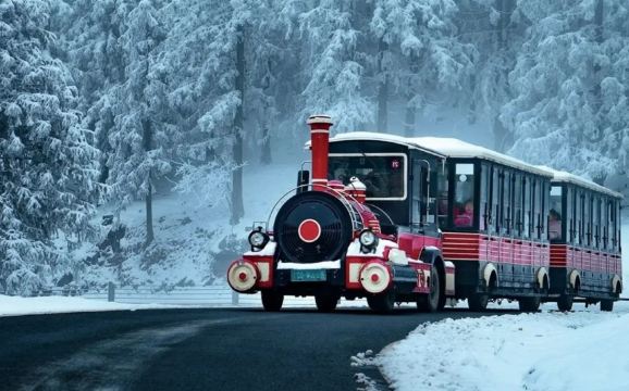 ▲ La montagna delle fate innevata è semplicemente un paradiso, assomiglia a un regno delle nevi da fiaba. Qui puoi fare foto al trenino identico a quello svizzero, passeggiare lungo la strada ammirando la neve candida, i paesaggi di brina ai lati della strada e le praterie alpine avvolte da un mare di neve sconfinato.