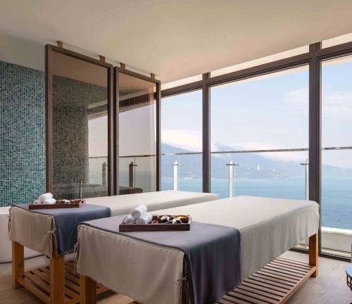 Goditi un'esperienza spa con una vista unica sul mare blu terapeutico in uno spazio tranquillo, separato e privato.