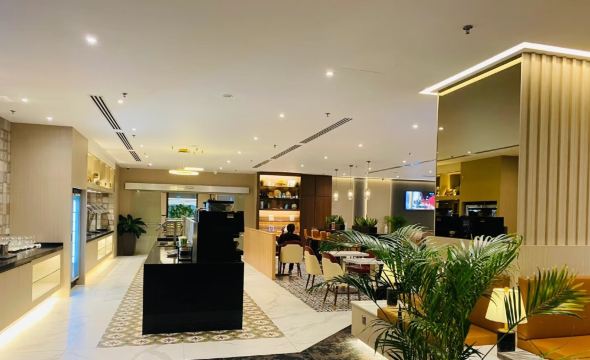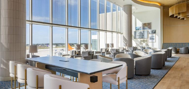 La Plaza Premium Lounge dell'aeroporto di Orlando si trova di fronte alla Palm Court nel Terminal C.