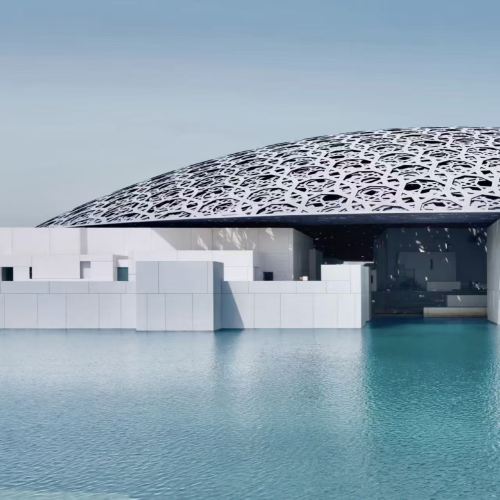 ▲ Louvre di Abu Dhabi: un museo unico situato sull'isola di Saadiyat, con una cupola argentata composta da una struttura traforata multistrato. La collezione comprende tesori che vanno da reperti preistorici all'arte contemporanea.