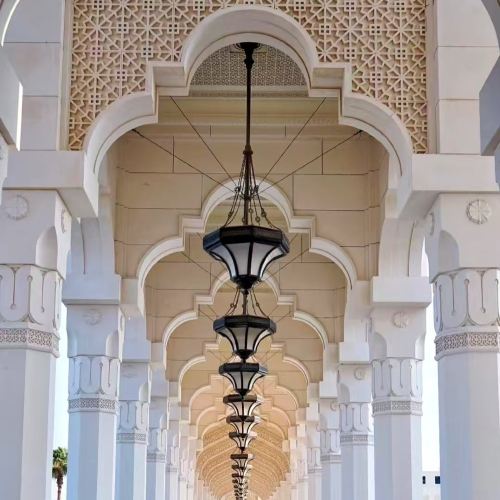 ▲ Gran Moschea dello Sceicco Zayed: una moschea imponente negli Emirati Arabi Uniti, caratterizzata da decine di cupole e oltre mille colonne. Gli interni sono decorati con abbondante marmo, intarsi d'oro e il più grande tappeto tessuto a mano del mondo.