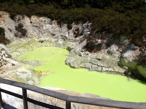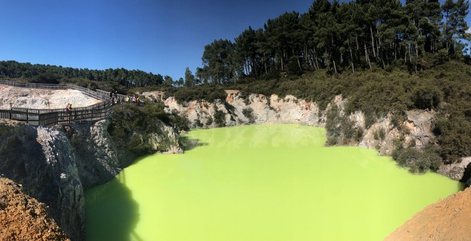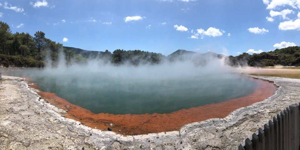 ▲ Le attrazioni uniche includono la famosa Piscina dello Champagne (Champagne Pool) - una sorgente termale naturale colorata, pozze di fango ribollenti, terreni fumanti, vasti panorami, enormi crateri vulcanici e terrazze multicolori di depositi minerali.