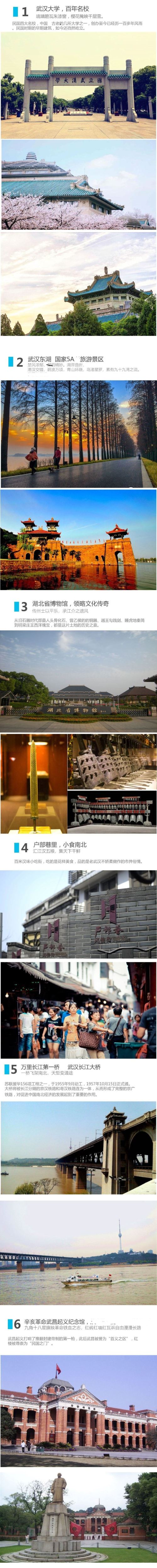 Percorso A: Torre della Gru Gialla, Sala commemorativa della rivolta di Wuchang, Vicolo Hubu, Ponte sul fiume Yangtze, Museo provinciale di Hubei, Lago dell'Est