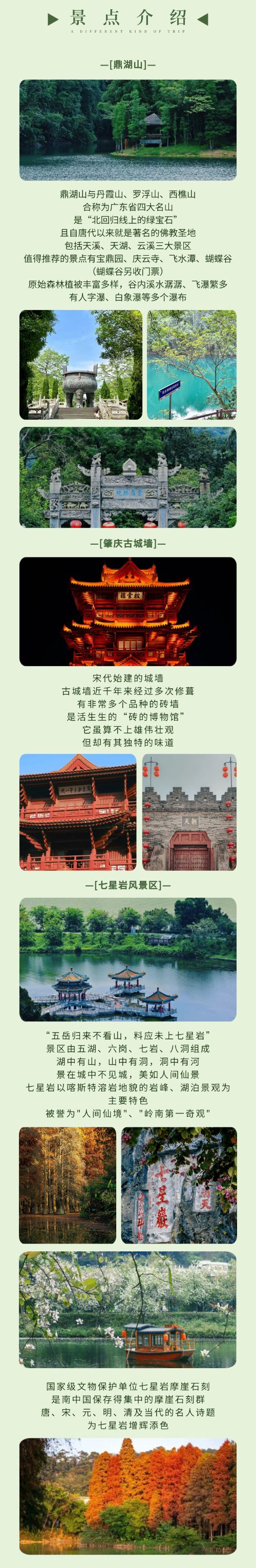 Dinghushan è un paradiso montano per gli abitanti del Guangdong e una meta turistica estiva di eccellenza. Le antiche mura della città di Zhaoqing sono un edificio simbolo dello stile architettonico cinese Han della dinastia Song e rappresentano una delle attrazioni imperdibili.