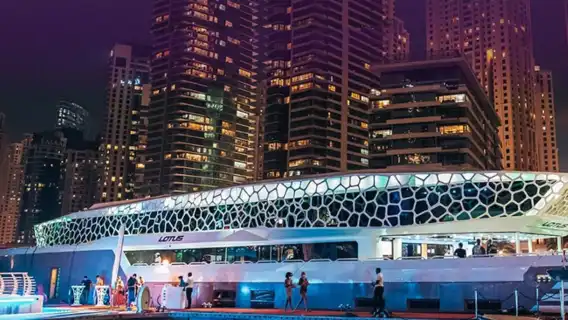 La crociera con cena in yacht a Dubai offre un viaggio incantevole tra le tonalità dorate di Dubai da un'angolazione diversa e libera da ostacoli, vista dal mare.