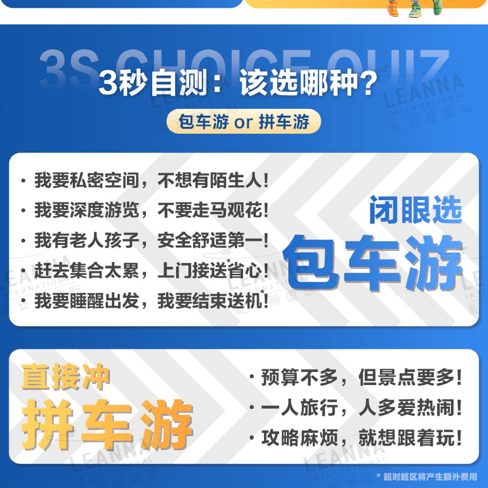 *Se desideri aumentare la durata del tour/la quantità di attrazioni o il trasferimento supera la zona, è necessario pagare un supplemento~