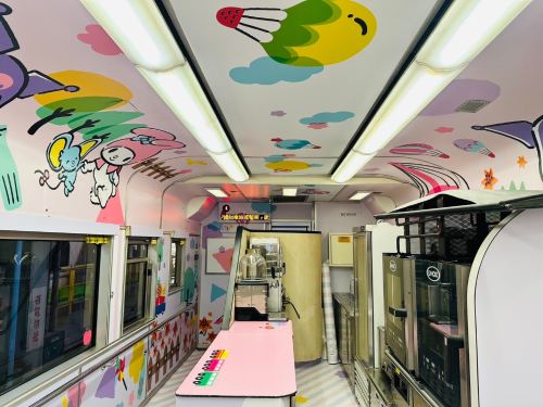 Il colore di sfondo rosa e colorato, abbinato alla simpatica My Melody e al giocoso Coolome, crea un'atmosfera deliziosa nella carrozza! Di tanto in tanto, si terranno esperienze fai da te e attività a tema festivo nella carrozza, e tutti sono invitati a partecipare per aggiungere più gioia e momenti piacevoli al viaggio. La carrozza è dotata di distributori automatici di capsule e di macchinette per adesivi, riservati esclusivamente a Moe Travel, che invitano i passeggeri a lasciare ricordi in modi diversi. È arrivato anche l'evento di caccia al tesoro in treno "Alla ricerca di partner di viaggio Moe": vieni a trovare le stelle Sanrio nascoste nella carrozza!
