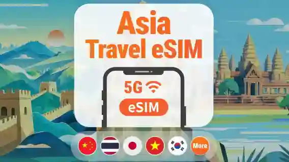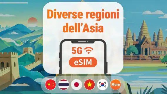 Asia 9 destinazioni 5G eSIM | Giappone, Thailandia, Vietnam, Indonesia, Corea e altro | 1–30 giorni | QR istantaneo