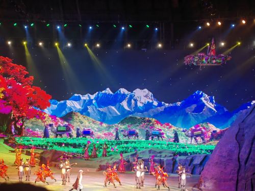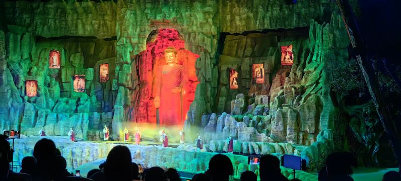 ▲ Questo grande spettacolo dal vivo drammatizza i pericolosi viaggi dei mercanti della dinastia Tang lungo la Via della Seta, unendo scenografie mozzafiato, acrobazie e gli effetti di un auditorium rotante a 360°.