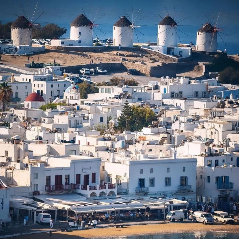 Il tour inizia dalla pittoresca spiaggia di Kalafatis, dove una breve sosta vi permetterà di ammirare lo splendido panorama costiero. Proseguirete poi verso l'incantevole villaggio di Ano Mera, famoso per le sue tradizionali taverne e il tranquillo monastero di Panagia Tourliani del XVI secolo. Successivamente, una guida vi accompagnerà in una passeggiata attraverso la città di Mykonos, dove potrete camminare tra le strade panoramiche piene di iconiche case bianche a cubo. Esplorerete punti di riferimento come i famosi mulini a vento, l'affascinante Piccola Venezia e l'unica chiesa di Paraportiani, ognuno dei quali riflette la ricca storia di Mykonos. Il tour si conclude sul lungomare vicino al municipio, lasciandovi con un'impressione profonda della vivace cultura e architettura di Mykonos.