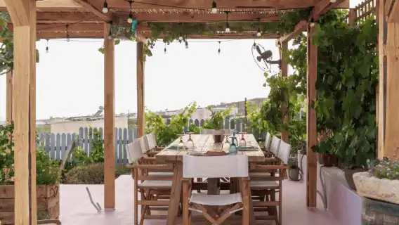 Goditi un pranzo dalla fattoria alla tavola in una fattoria locale nel villaggio di Pyrgos