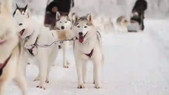 Prova l'emozione di un giro di 5/10 km su una slitta trainata da husky attraverso una foresta innevata
