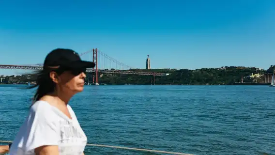 Ammirate la vista del Cristo Rei e del Ponte 25 de Abril mentre navigate