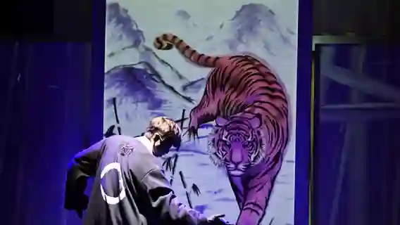 Partecipa a uno spettacolo di pittura dal vivo in cui il cast crea arte visiva dal vivo sul palco