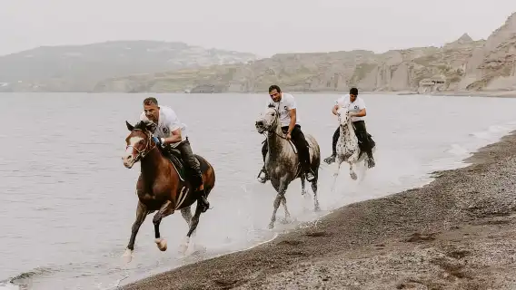 Scopri le colline vulcaniche di Santorini accompagnati da splendidi cavalli