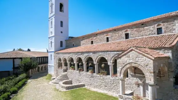 Esplora l'architettura bizantina e gli affreschi del monastero di Ardenica.