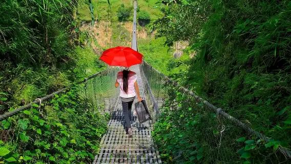 Senti l'adrenalina scorrere mentre attraversi uno dei ponti sospesi più iconici del Nepal.