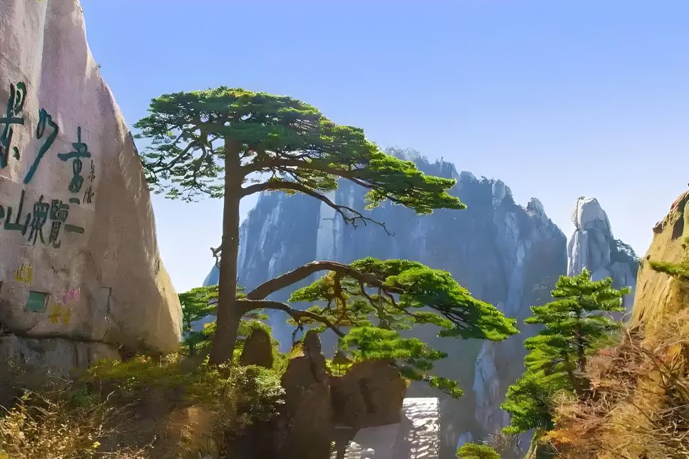 Entrando nella montagna, si raggiunge prima Baie Ridge, che ha la forma di un'oca sdraiata; poi si raggiunge Shixin Peak, dove strani pini e rocce mostrano le meraviglie della natura, e i pini tigrati neri si ergono fieri tra loro.