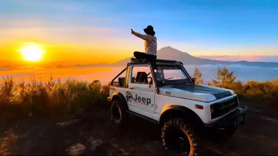 Ammira l'alba sopra le nuvole sul Monte Batur con l'avventura in Jeep