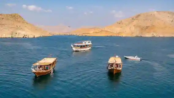 Goditi una crociera tradizionale su dhow omanita in legno lungo la costa del Musandam