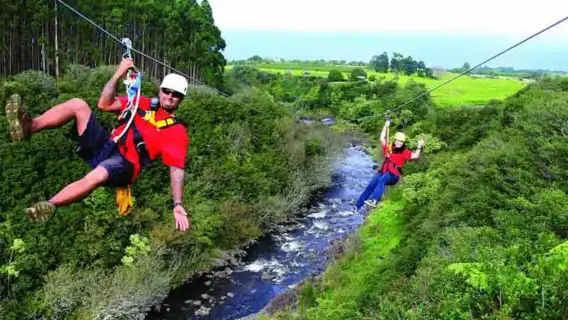 Sorvola 14 cascate e il fiume Umauma su 9 lunghe teleferiche a Hakalau